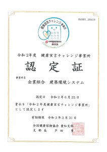 令和2年度健康宣言チャレンジ事業所に認定されました